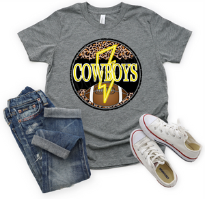 Cowboys Orange & Black Football Cheetah Circle With Neon Lightning Bolt
