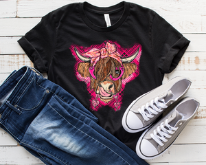 Highland Cow Valentine's Heart Necklace With Plaid Background Transfer