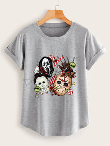 Ghostface, Michael Myers, Jason, and Freddy with Christmas Decorations