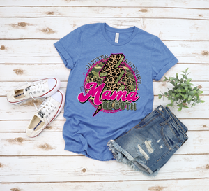 Mama Of Both Glitter & Dirt Leopard Circle With Lightning Bolt Transfer